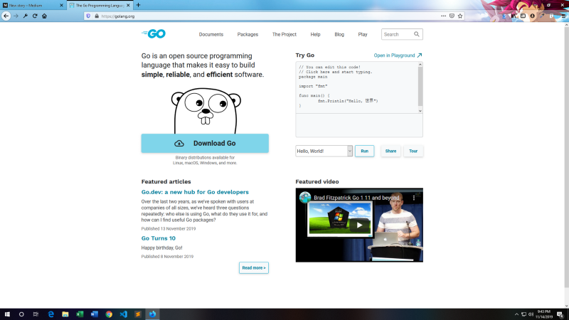Go or also known as GOLANG is a programming language which was developed at Google in the year 2007 by Robert Griesemer, Rob Pike and Ken Thompson. It is a statically-typed language and has syntax similar to C language. It was developed with the vision of high performance and fast development. Go provides a variety of features such as memory safety, garbage collection, dynamic-typing capability etc. It also has a rich standard library.